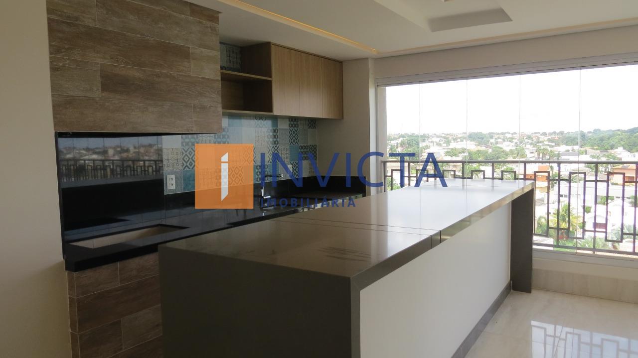 Sala ampla para 3 ambientes, com espaço de TV já equipado com painel e rack. Varanda gourmet com bancada em acabamento diferenciado e armários planejados, integrada à cozinha planejada e com acesso ao elevador de serviço.