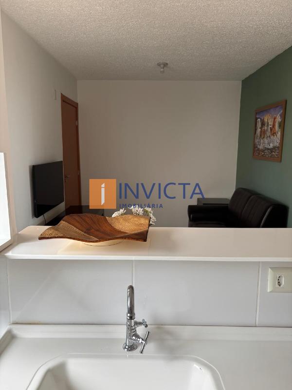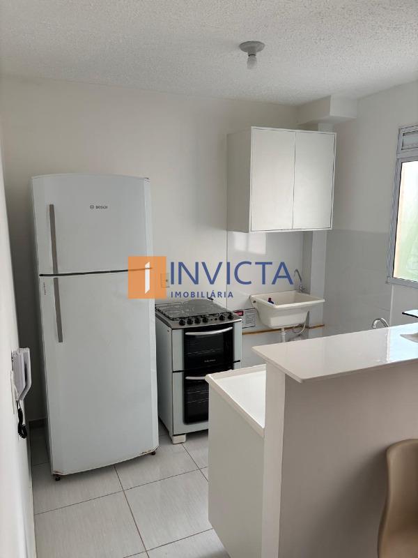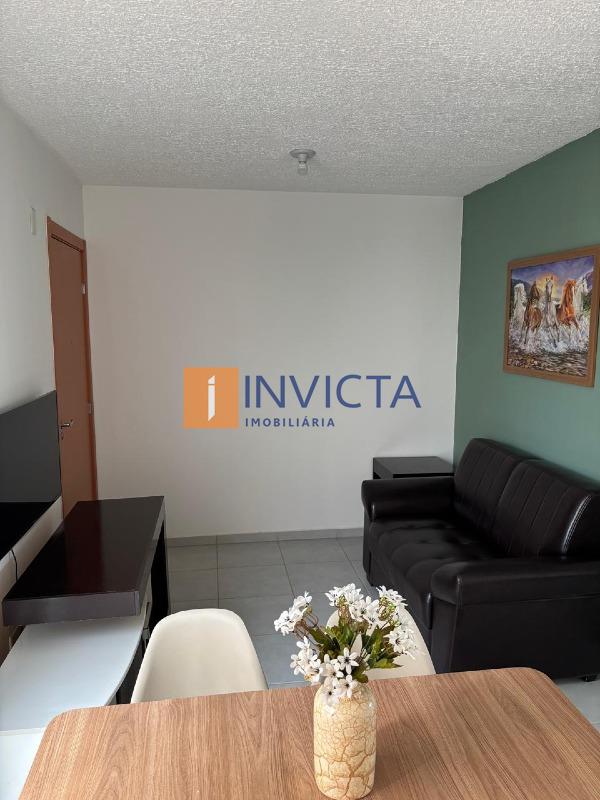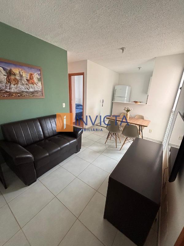 Apartamento mobiliado novo composto de sala, 2 quartos, banheiro, cozinha e área de serviço. Condomínio sem elevador.