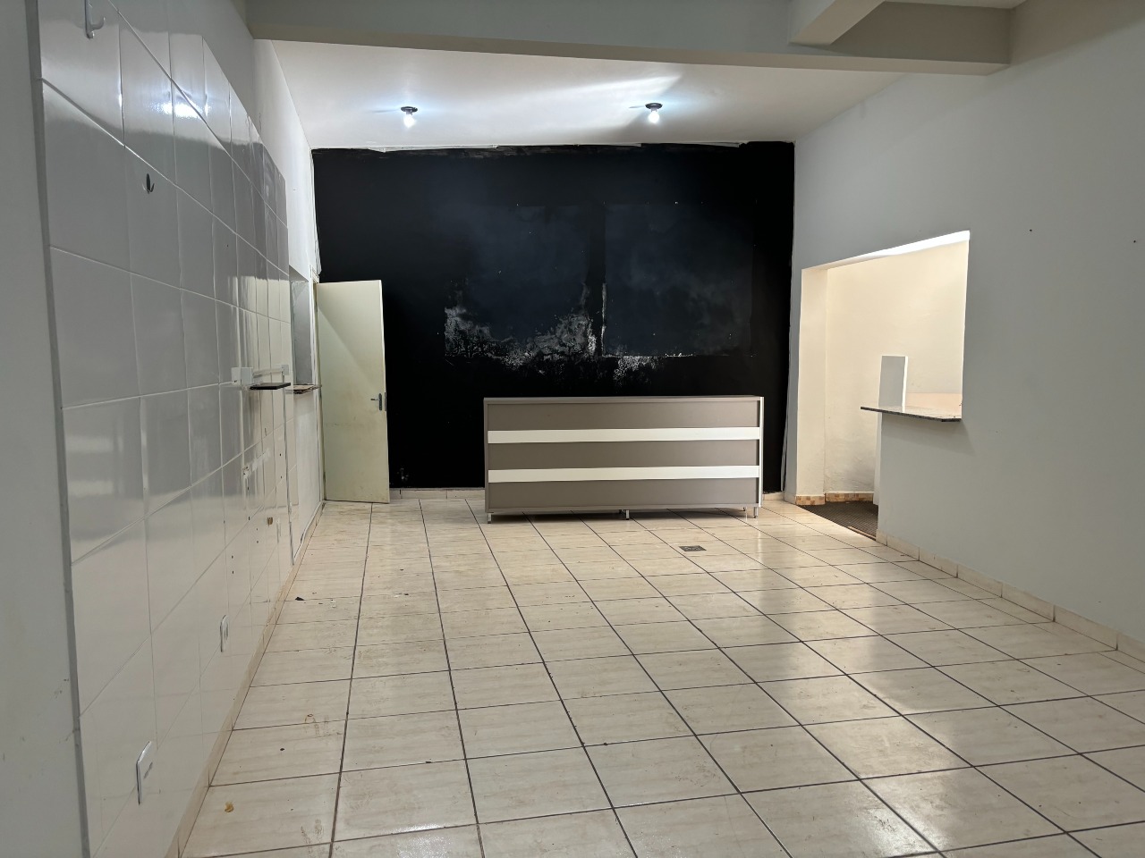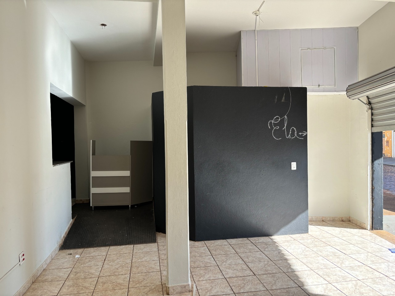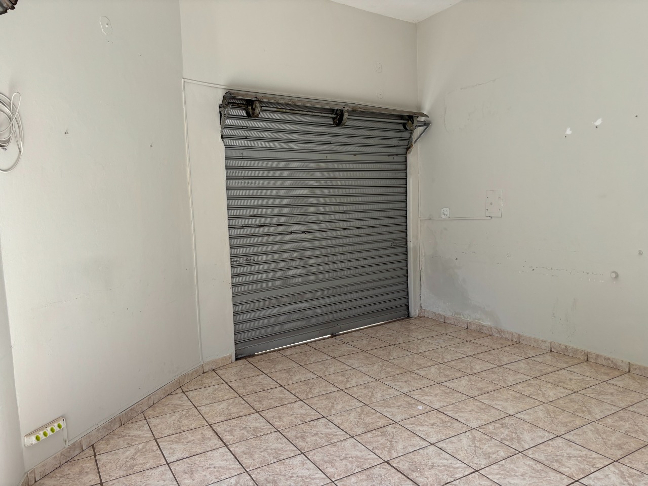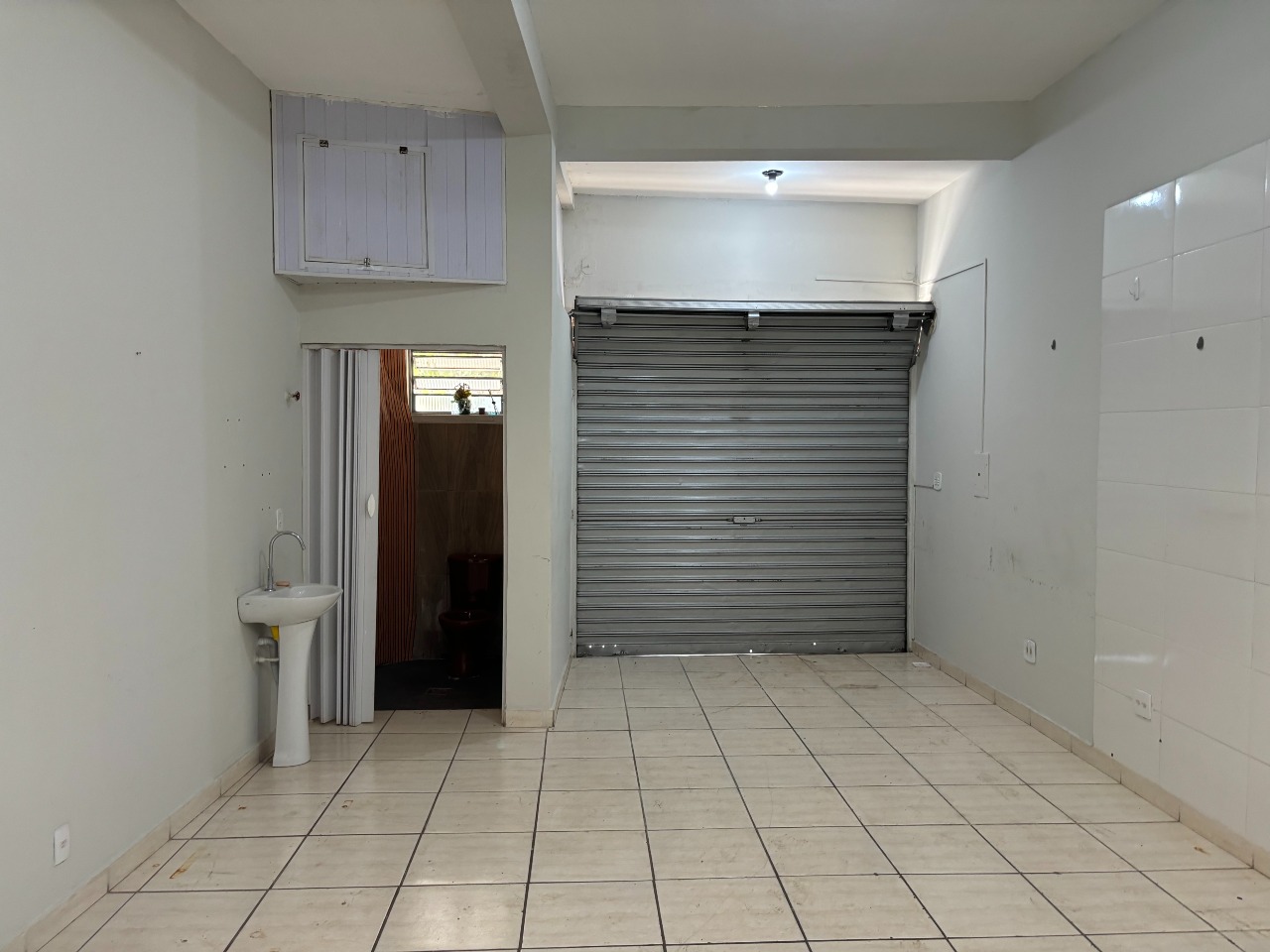 Esquina com três portas de aço, com dois banheiros e área de serviço, com mais ou menos 40 m² de área util.