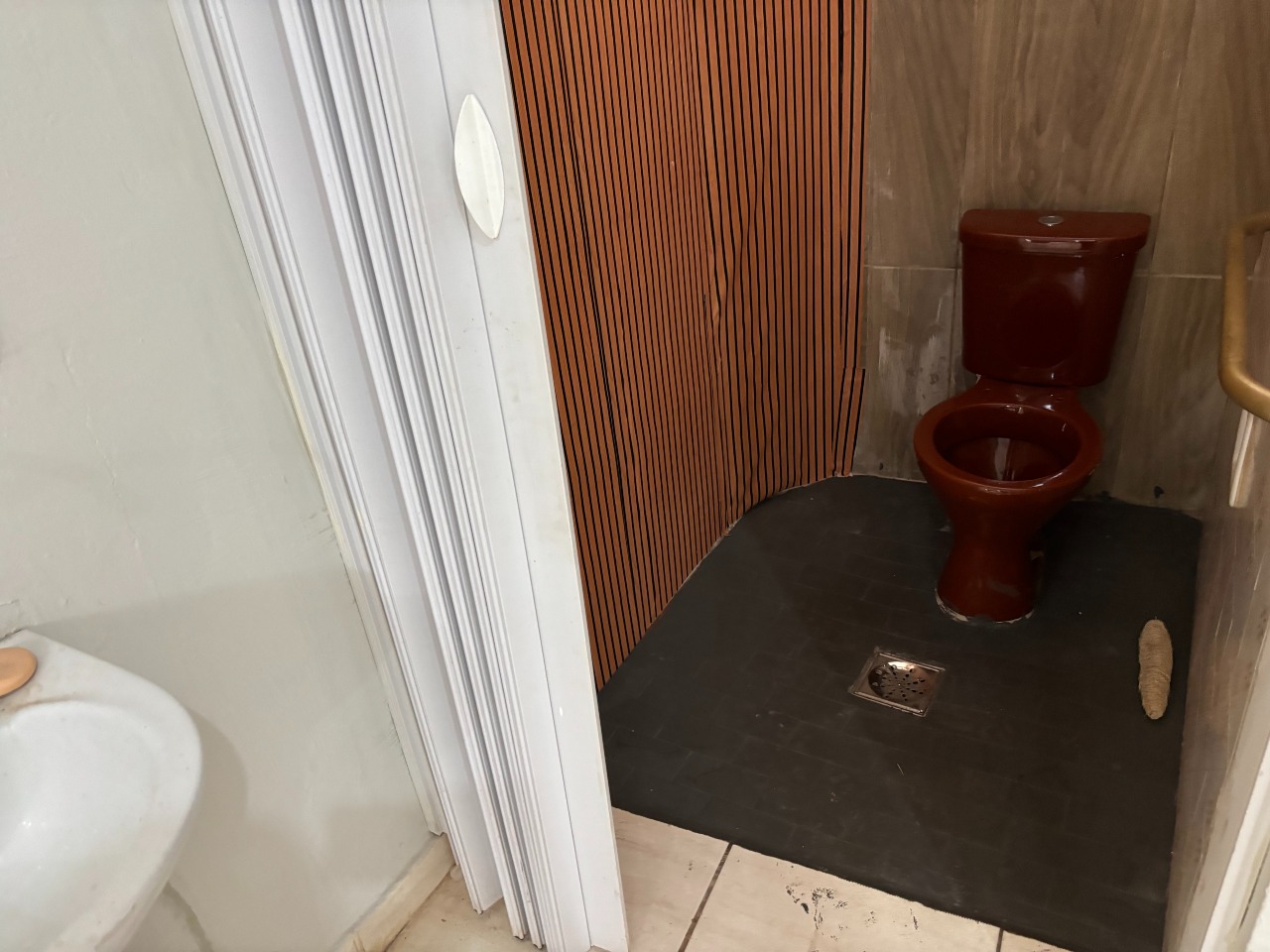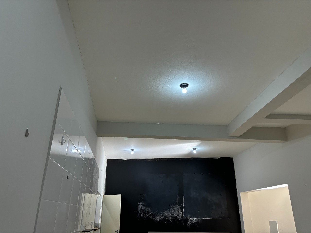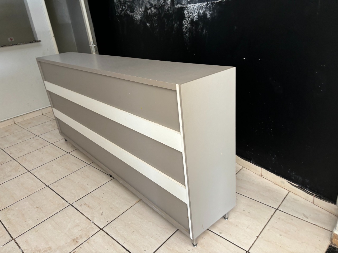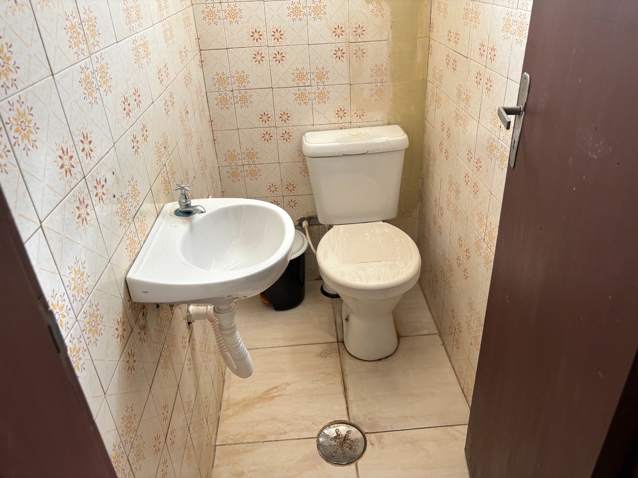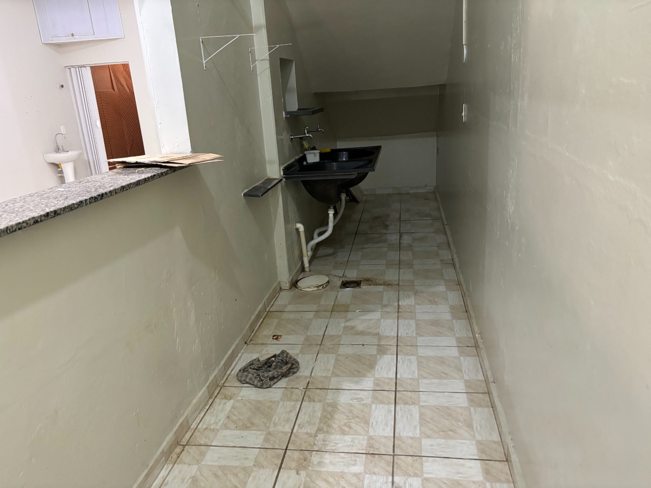Esquina com três portas de aço, com dois banheiros e área de serviço, com mais ou menos 40 m² de área util.